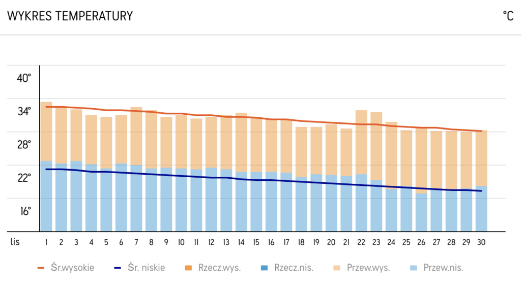 | Dubaj | 31°C | 20°C | ~11 godzin | ~13 godzin | 6 mm |
