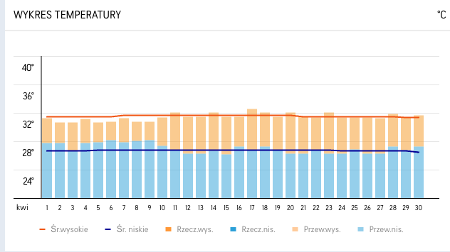 | Malediwy | 31°C | 27°C | ~12 godzin | ~12 godzin | 87 mm |
