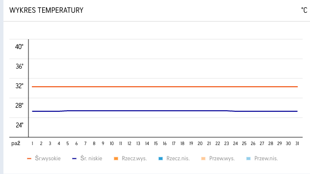 | Malediwy | 30°C | 25°C | 27.5°C | 100 mm |