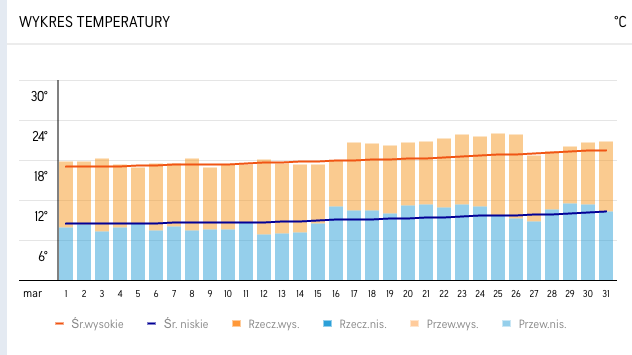 Pafos pogoda marzec to doskonała propozycja dla osób pragnących uciec od zimowej aury i zanurzyć się w łagodnym klimacie Cypru. Marzec w Pafos oferuje przyjemne temperatury oraz wiele słonecznych dni, co sprzyja zarówno zwiedzaniu, jak i aktywnemu wypoczynkowi.W ciągu dnia temperatury powietrza w Pafos oscylują wokół 17°C – 21°C. Taka pogoda umożliwia komfortowe zwiedzanie zabytków, takich jak ruiny starożytnego miasta oraz malownicze plaże. Wieczory są chłodniejsze, z temperaturami spadającymi do 7°C – 10°C, dlatego warto zabrać ze sobą cieplejszą odzież na wieczorne spacery czy kolacje na świeżym powietrzu.