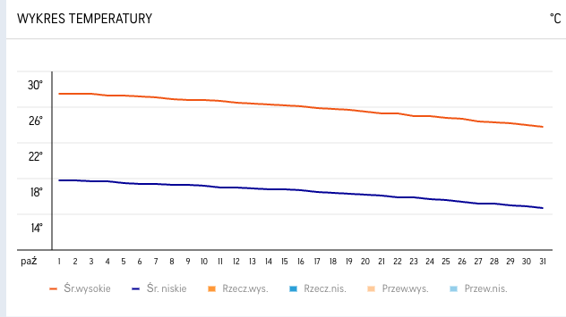 | Pafos | 25°C | 17°C | ~11 godzin | ~13 godzin | 15 mm |