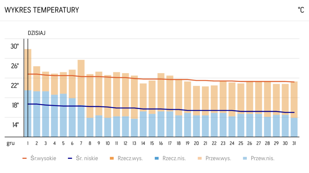 Wyspy Kanaryjskie pogoda grudzień to idealna destynacja dla tych, którzy chcą uciec od zimowej szarugi i cieszyć się przyjemnym klimatem. Grudzień na Wyspach Kanaryjskich charakteryzuje się łagodnymi temperaturami i dużą ilością słońca, co sprzyja zarówno zwiedzaniu, jak i wypoczynkowi na świeżym powietrzu.W ciągu dnia temperatury na popularnych wyspach, takich jak Teneryfa, Gran Canaria czy Lanzarote, wahają się od 19°C do 23°C. Taka pogoda pozwala na komfortowe zwiedzanie atrakcji turystycznych, relaks na plażach czy spacery po urokliwych miasteczkach. Wieczory mogą być nieco chłodniejsze, z temperaturami spadającymi do około 15°C, więc warto zabrać ze sobą lekką kurtkę na wieczorne wyjścia.
